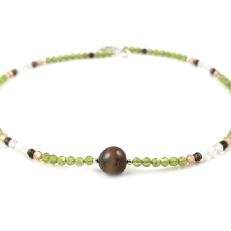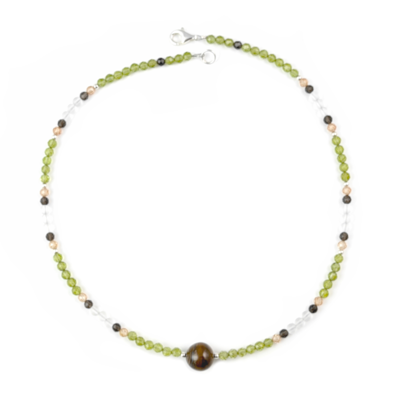 Peridot, auch als Olivin bezeichnet ist ein hellgrünes Magnesium-Eisen-Silikat mit mittlerer Mohshärte ist seit Jahrtausenden als Schmuckstein geschätzt.