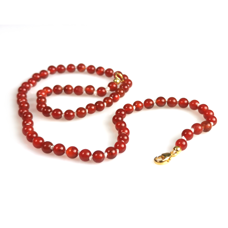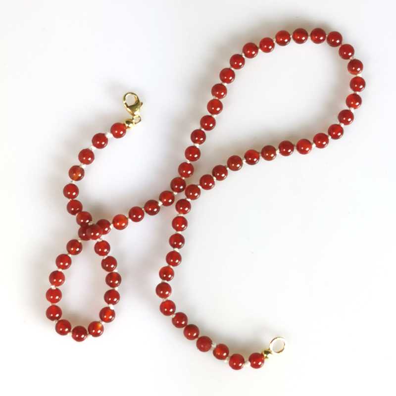 Geknüpfte Ketten aus Carneol mit 6 mm Durchmesser sind gerne auf Anfrage verfügbar. Bitte benütze dafür unser Kontaktformular.
