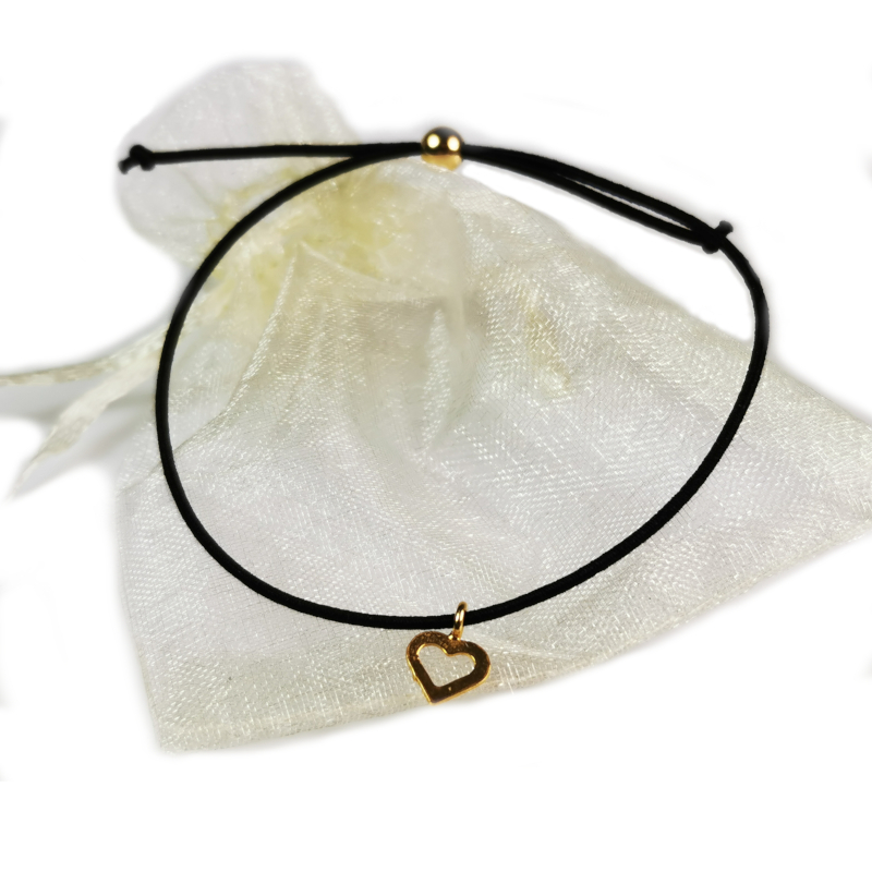 Herz Anhänger. Das Armband ist aus elastischem schwarzem Schmuckgummi handgefertigt.